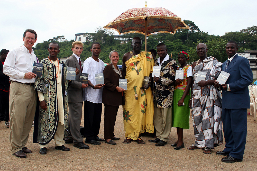 2005年世界教育巡迴團期間,國際青少年人權協會的行政主管,與海岸角國王及官員會面